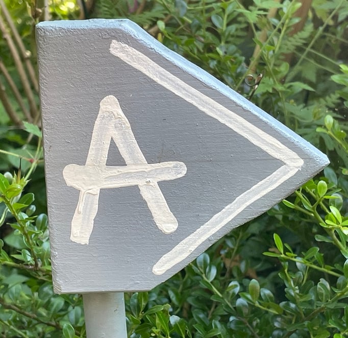Vom Schulparkplatz kommend, geht es links am Doppelhaus vorbei durch die Gartentür, Treppe